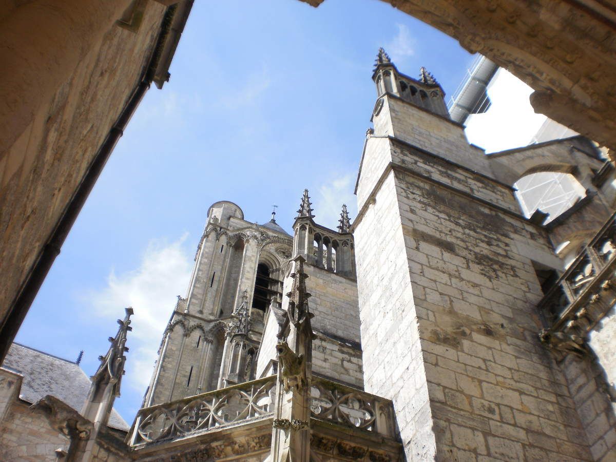 Mais indépendamment de cette quatrième église, qui apparaît au IXe siècle, on peut encore penser avec quelque probabilité que l'intervalle qui la sépare de celle du IVe n'a pas été occupée par cette dernière seulement, quand on songe aux invasions , aux incendies et surtout à la manière dont, suivant Grégoire de Tours, ces édifices étaient construits, le bois formant la majeure partie des matériaux employés à leur construction; il est donc permis de croire que des réédifications partielles ou 'plutôt totales ( car à chaque reconstruction, on sait qu'on ajoutait toujours aux dimensions de l'édifice précédent), on peut croire, disons-nous, que d'autres églises ont dû exister du IVe au IXe siècle. Quoi qu'il en soit, il est certain que la cathédrale du XIIIe siècle, dont la pensée de projet apparait en 1172 [3] n'est pas la troisième église bâtie, mais peut-être bien la cinquième ou sixième de celles qui se seraient succédées sur le même emplacement depuis celle fondée par saint Ursin, en 260.